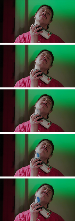 Dans mes projets, l’écriture précède, dans un protocole très appliqué le tournage et le montage. Je m’attarde à une écriture littéraire pour échapper un instant au film, pour oublier cette image, «dans le processus de création, cela correspond à un détournement des règles admises pour trouver refuge dans la littérature, en espérant que cela engendrera une forme de cinéma singulier.» (Chantal Akerman, vertigon°33). Lors du tournage, en les attaquant au pied de la lettre, ces textes permettent de créer des images inédites, inattendues. Les terrains narratifs que j’explore sont l’errance et le geste minuté, la désertion et les relations interpersonnelles, la vie en mouvement et le quotidien, l’évitement de l’évènement. Là, je crée des personnages qui trouvent l’endroit de leur désir d’exister face au monde. «Regarder en l’homme quels sentiments, quelles pensées le font agir, dans son chemin vers le bonheur ou la mort» (Michelangelo Antonioni, écrits 1936-1985). Je développe des narrations mineures négociants avec la fiction et le documentaire pour faire de l’être et de sa singularité la charge de mes films. Avec un regard sur mes occupations et celles d’autres personnes je retiens des allures, des styles de vie. Dans ces observations du journalier s’infiltre la fiction et lors de leur reconstitution, la romance les trahit pour mieux les restituer. Mes héros atypiques sont caractérisés par des comportements exclusifs, presque pathologiques, mis en scène dans le «temps vidéo» : le temps au présent contenu dans la durée du film. Et dans ce temps il n’y aura rien pour les perturber. En évitant de raconter une intrigue, je soutient qu’ils existent par leur quotidien et ce n’est pas seulement ce qui est régulier et répété. Leur quotidien, c’est leur réalité : l’espace qu’ils ouvrent dans la vie pour dérouler leurs journées. Ils peuvent dire «je suis là».
